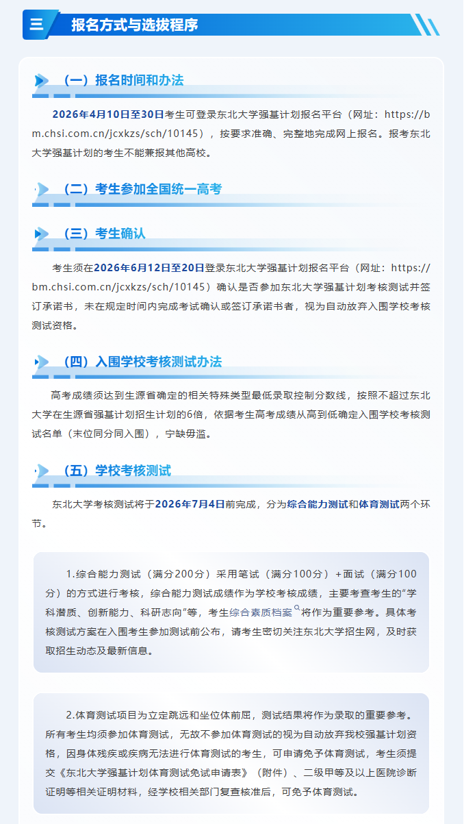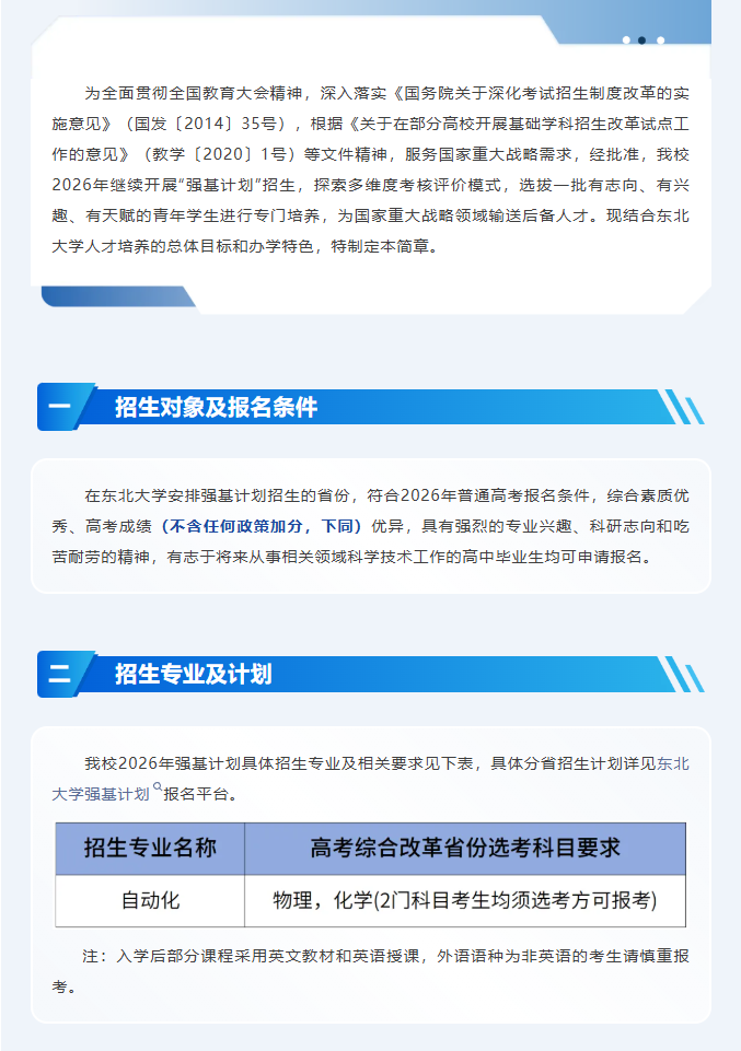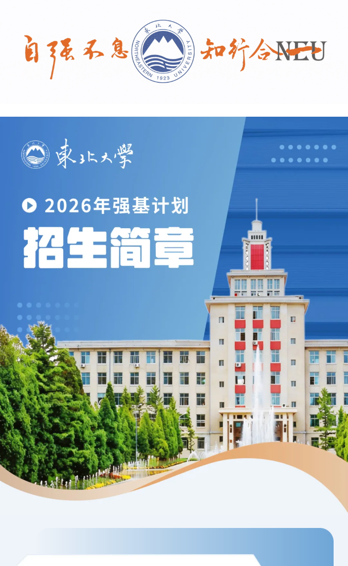 东北大学2026年强基计划招生简章