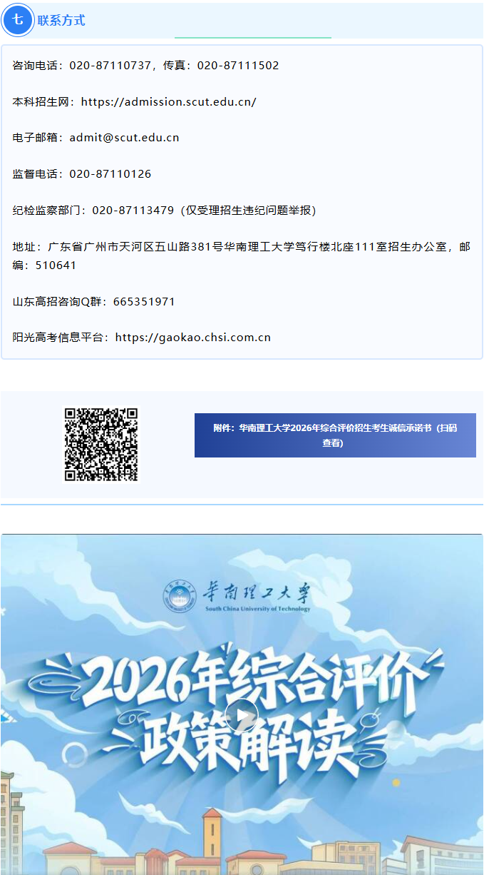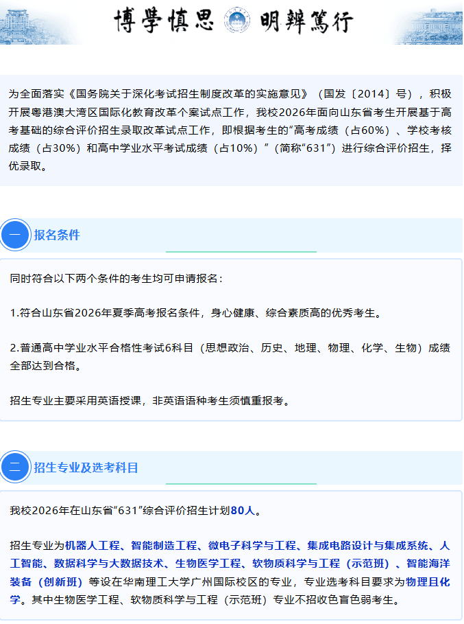 华南理工大学发布2026年山东省综合评价招生简章