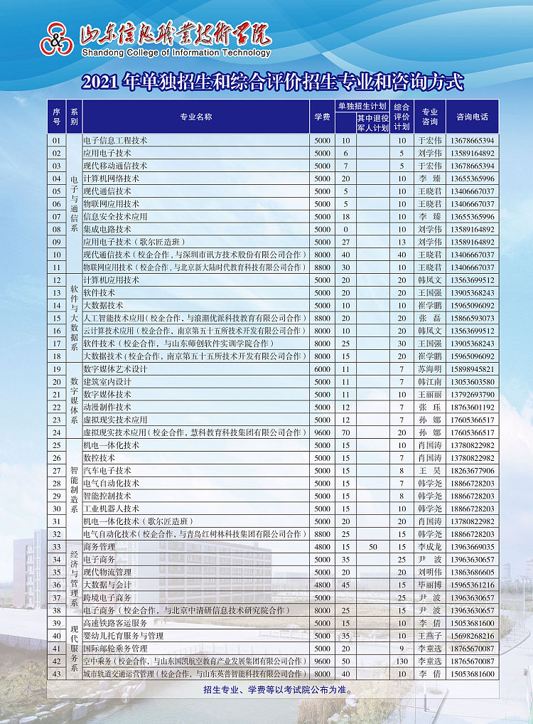 山东信息职业技术学院2021年单独招生和综合评价招生报考指南