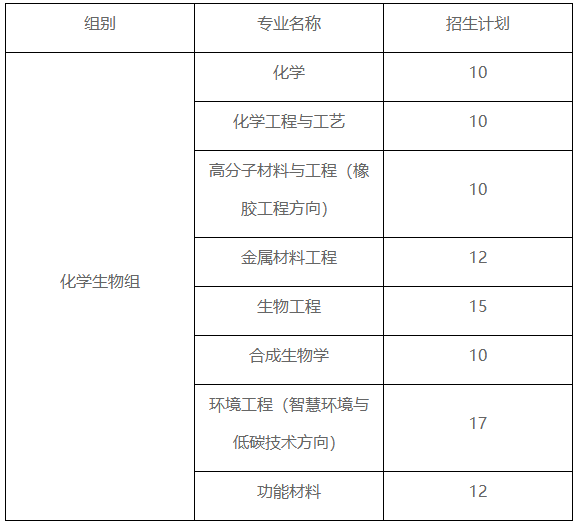 (一)化学生物组:选考科目要求为物理和化学(必选),计划招生96名。